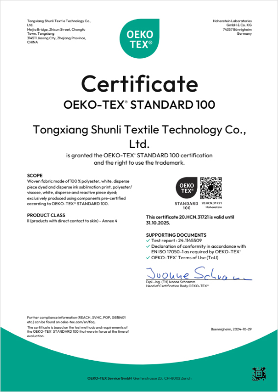 Pored ovih prednosti izvedbe, zaštita okoliša tkanina za unutarnje obloge od poliestera također je fokus modernih potrošača. Tongxiang Shunli Textile Technology Co., Ltd., aktivno promiče inovaciju zaštite okoliša i reciklira obloge poliestera potrošača kroz naprednu tekstilnu tehnologiju i procese recikliranja okoliša za proizvodnju novih recikliranih obloga. Ova reciklirana poliesterska obloga ne samo da zadržava sve prednosti originalne poliesterske obloge, već i promiče učinkovito korištenje resursa i kružne mode, u skladu s globalnim trendom zaštite od zelene boje i zaštite okoliša. Ovaj pristup ne samo da poboljšava tržišnu konkurentnost tkanina od poliesterskih obloga, već i pokazuje aktivne napore tvrtke u održivom razvoju.